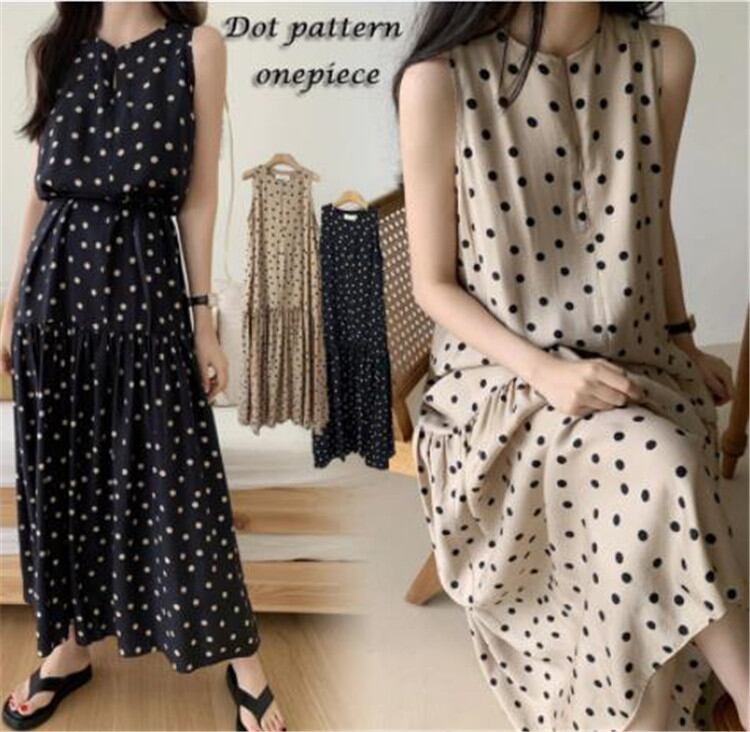 ドット柄ティアード ロングワンピース夏レディース ゆったりする 百掛け 快適である 大人気